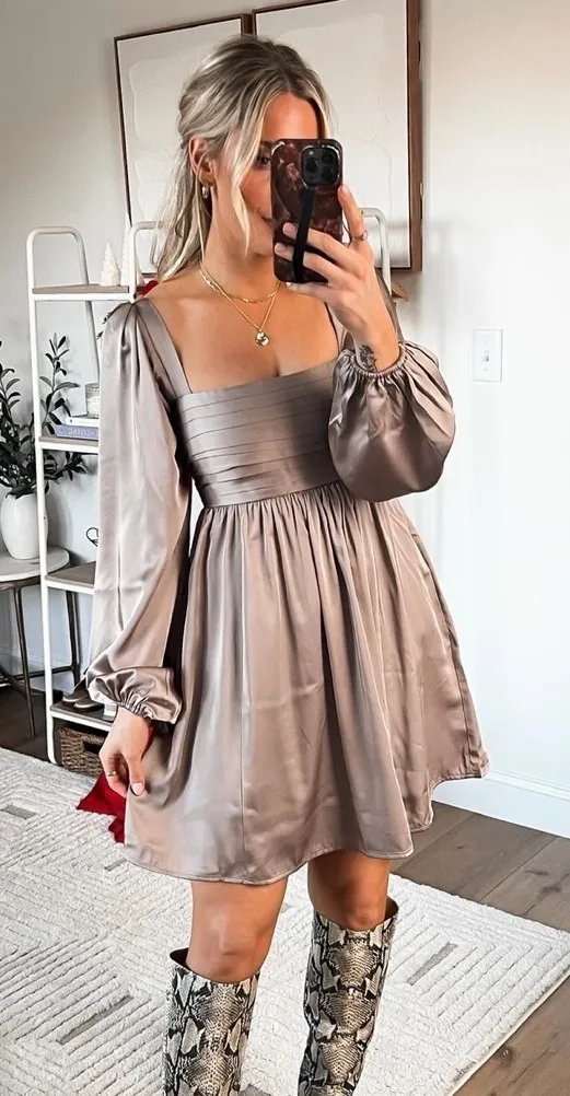 Abercrombie & Fitch Emerson Satin Long Sleeve Mini Dress in Taupe Good condition. True color shown... Show more