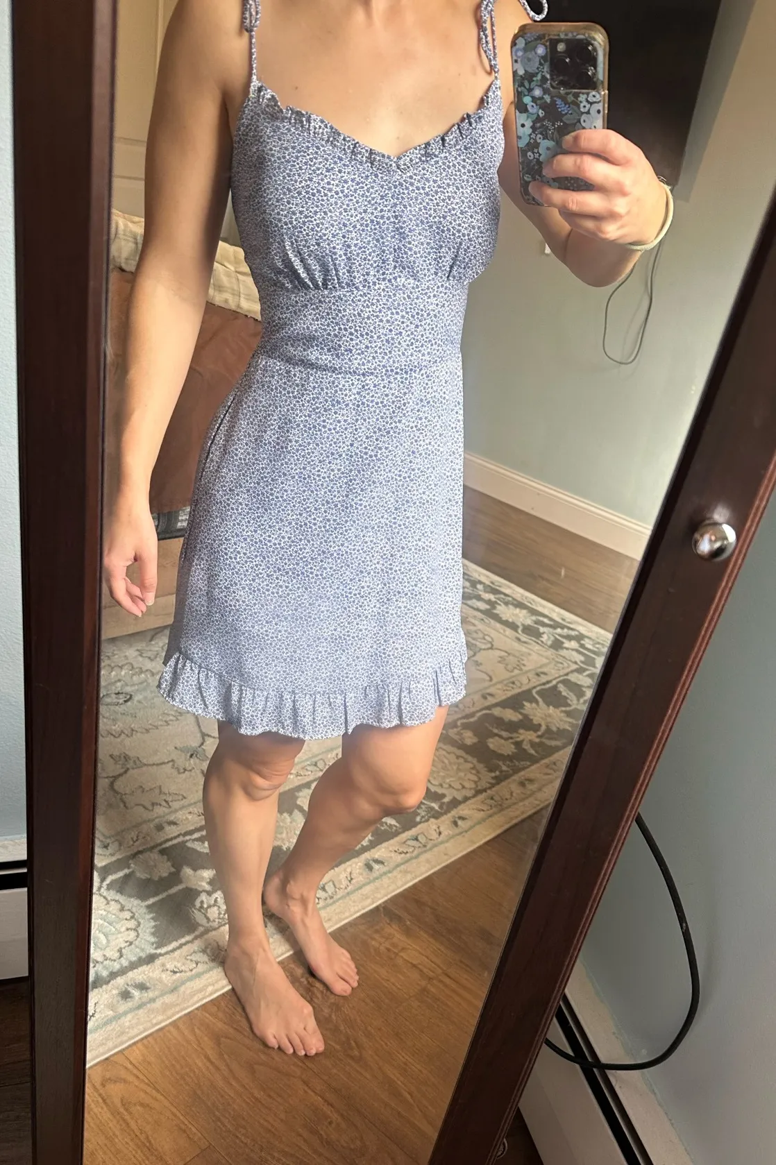 XS floral mini dress. Straps are adjustable by tying. Worn a couple times. I’m great condition. Grea... Show more