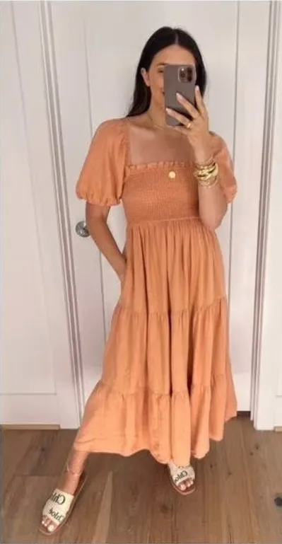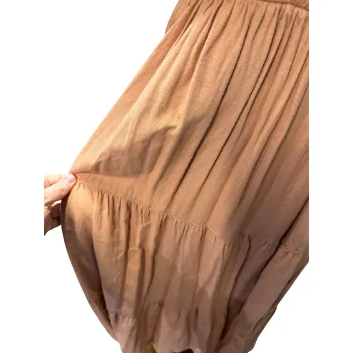 Abercrombie & Fitch Flowy Linen Blend Midi Dress Light Brown With Pockets Easy and effortless Aberc... Show more
