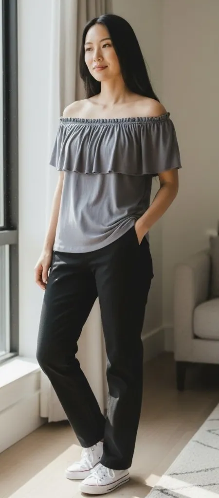 Description: Soft, feminine, and easy to wear, this Abercrombie & Fitch off-the-shoulder ruffle top... Show more