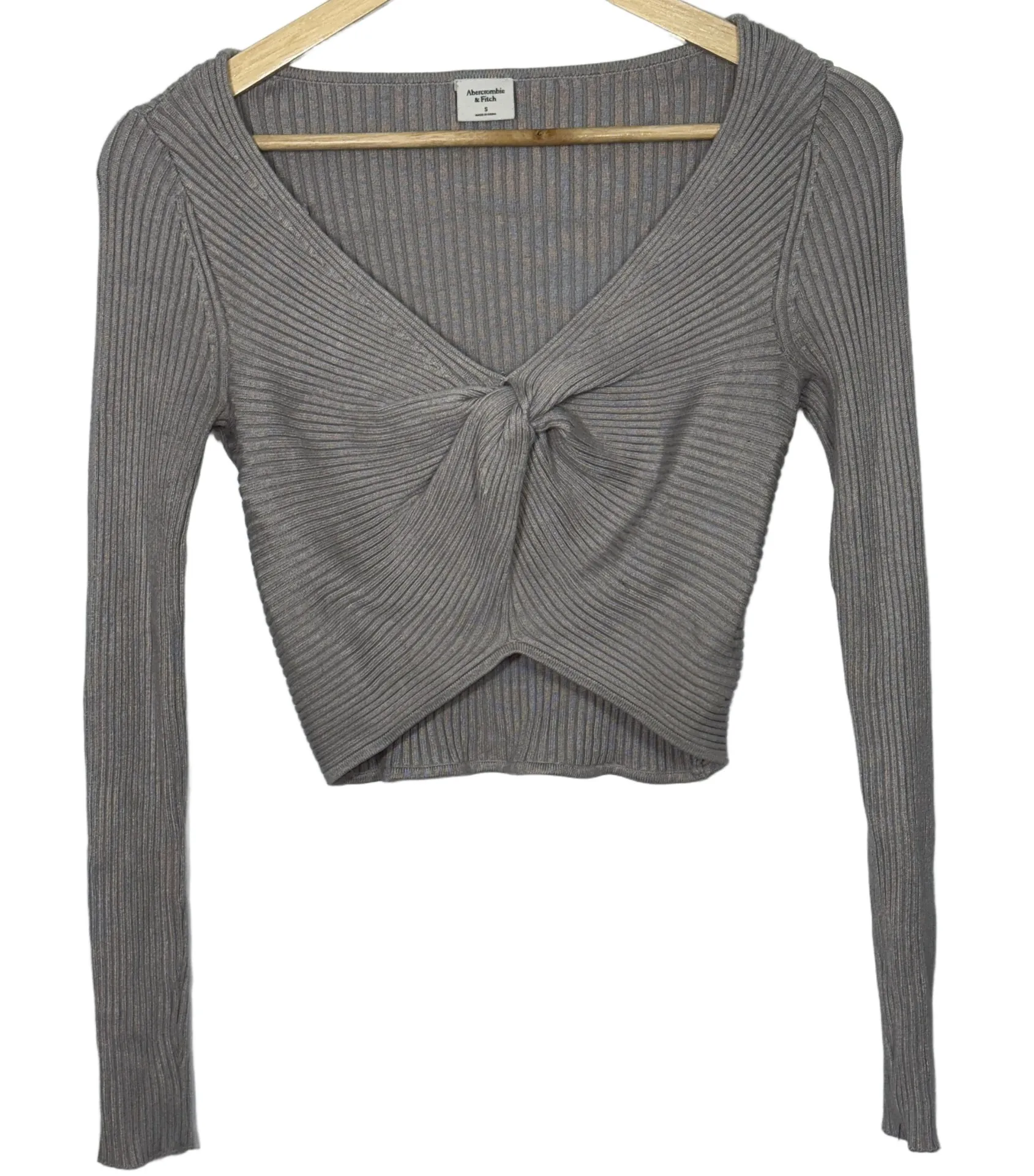 Abercrombie & Fitch Grey Gray Ribbed Knit Long Sleeve Cropped V-Neck Sweater Top Womens Size Small (S)