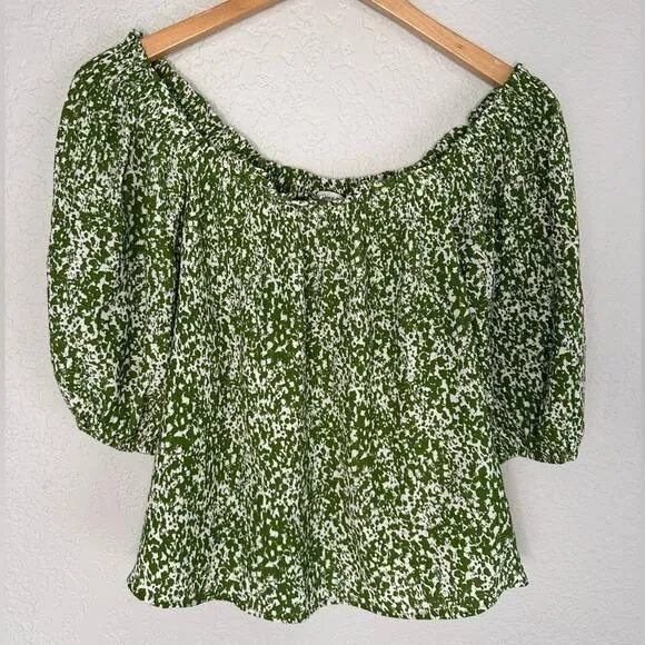 Abercrombie & Fitch Green Floral Watercolor Print Babydoll Top Viscose blend Puff Sleeve Dainty S... Show more