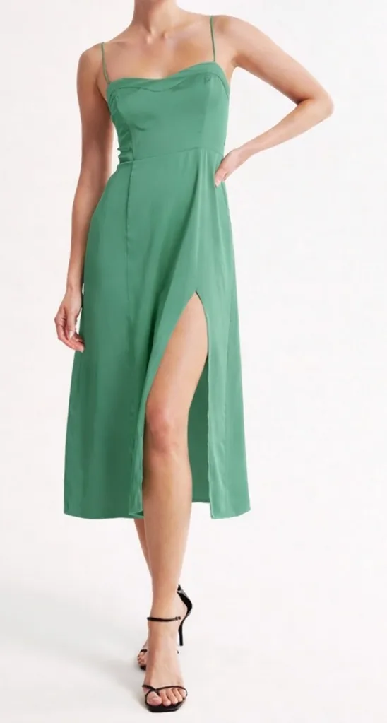 Super cute midi length dress, with a slit. So comfortable, just don’t have anything to wear it to an... Show more