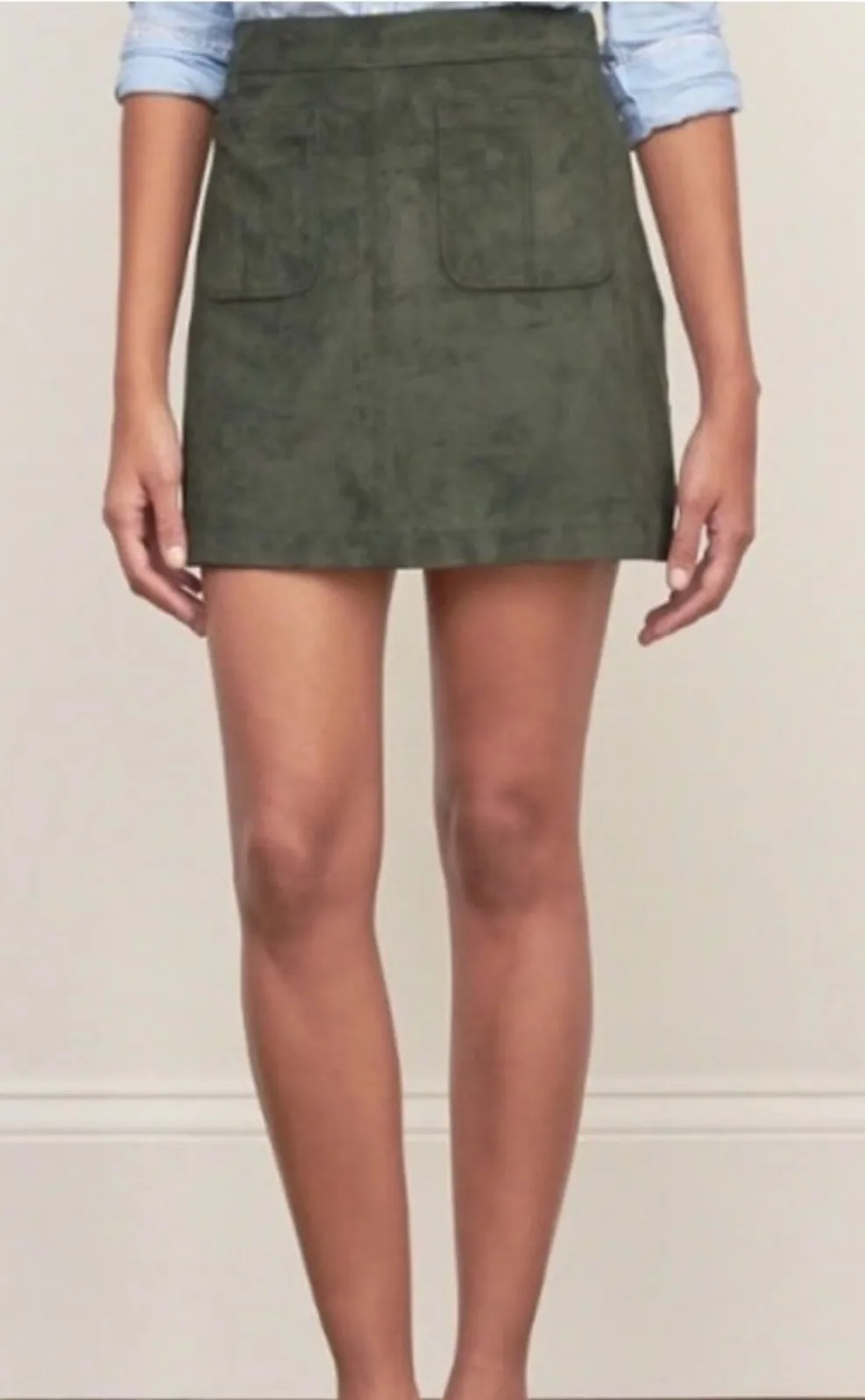 Good pre worn condition. Abercrombie & fitch green faux suede mini skirt. Two front pockets. Size 8.... Show more