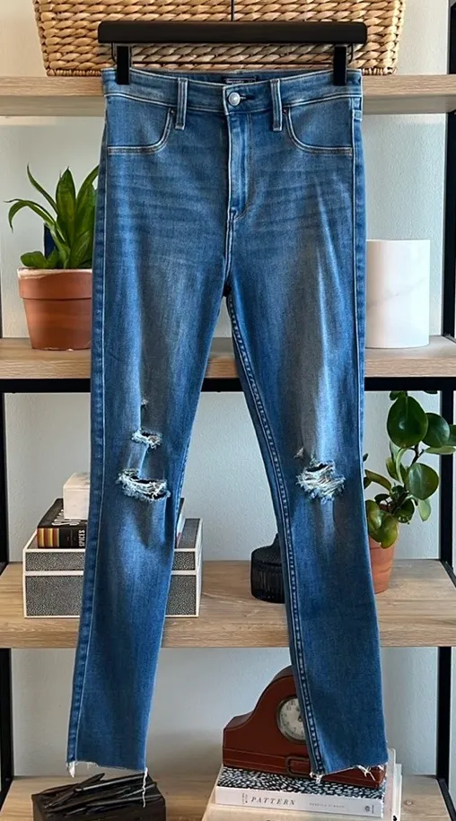 Abercrombie & Fitch High Rise Skinny Distressed Legging/Jeggings Ankle Jeans, 27 / 4 EUC- no wear t... Show more