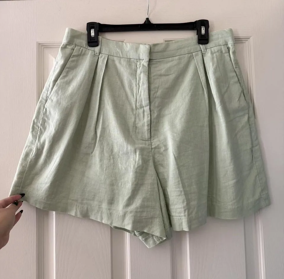 Abercrombie & Fitch High Waisted Light Green Linen Blend Shorts size L, waist: 34-38” Our new A&F... Show more