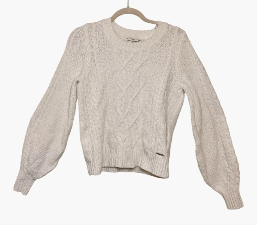 Classic Abercrombie & Fitch cable knit sweater in a soft ivory white tone. This timeless knit featur... Show more