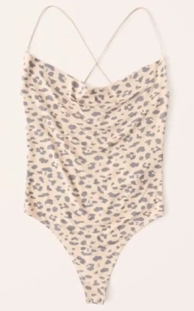 Abercrombie & Fitch Tan & Black Leopard Print Cowl Neck Criss Cross Back Bodysuit Size S Animal, Le... Show more