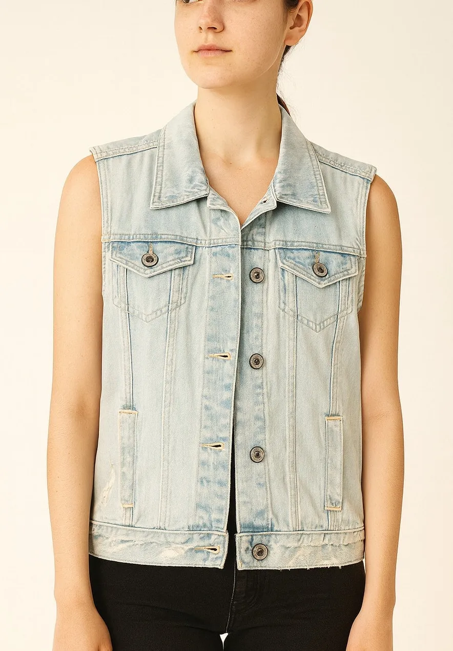 Abercrombie & Fitch Light Wash Distressed Denim Vest Women’s Size: Large Light wash denim with dist... Show more