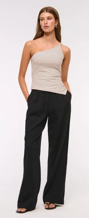 Abercrombie & fitch linen blend pull on pants black breezy, wide leg, boho, trendy, casual women'... Show more