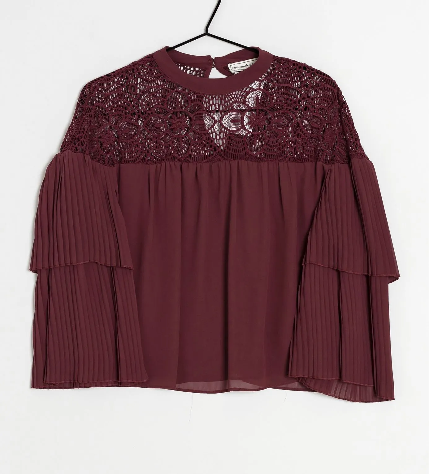 Abercrombie & Fitch Maroon Crochet Lace Pleated Sleeve Blouse Brand: Abercrombie & Fitch Size: Mediu... Show more