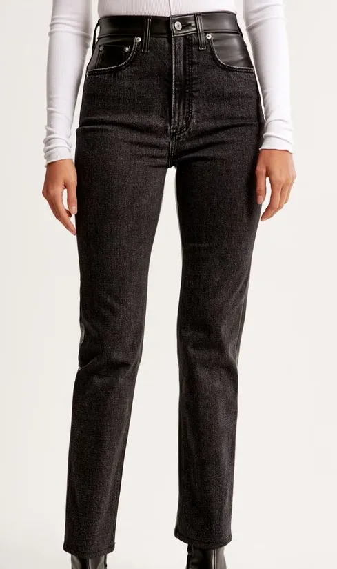 Abercrombie & Fitch Mixed Fabric Ultra High Rise Ankle Straight Jeans Gently used - normal signs of... Show more