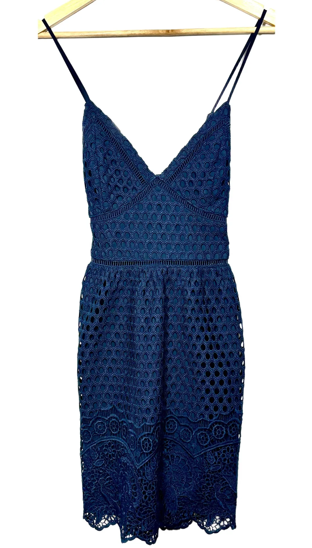 Abercrombie & Fitch Navy Blue Lace Crochet Spaghetti Strap Mini Dress Womens Size Small (S)