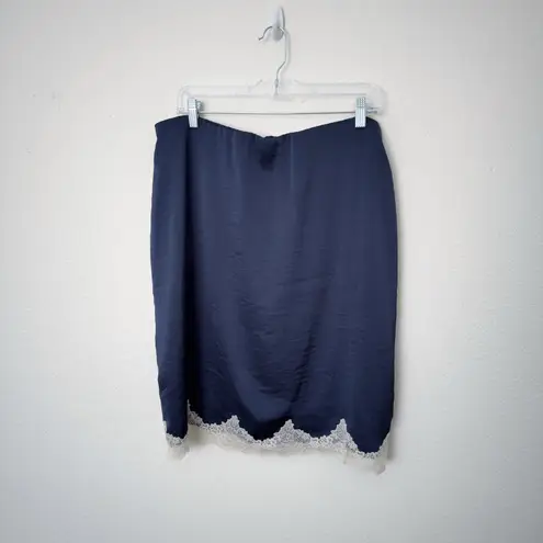 Abercrombie & Fitch Size Large L Navy Blue Satin Lace Hem Pencil Midi Skirt NWT New with Tags Size:... Show more