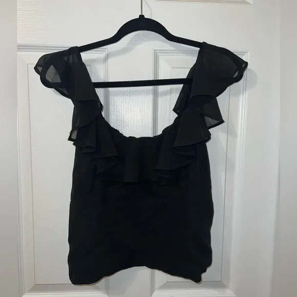 NWOT Abercrombie Ruffle Scoop Neck top in Black size medium. Chiffon fabric, machine washable. Thi... Show more