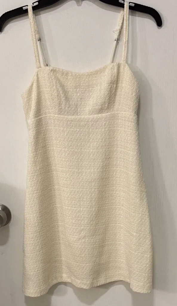 Cream Textured Sleeveless Dress: Elegant cream sleeveless dress with a textured design. Perfect for... Show more
