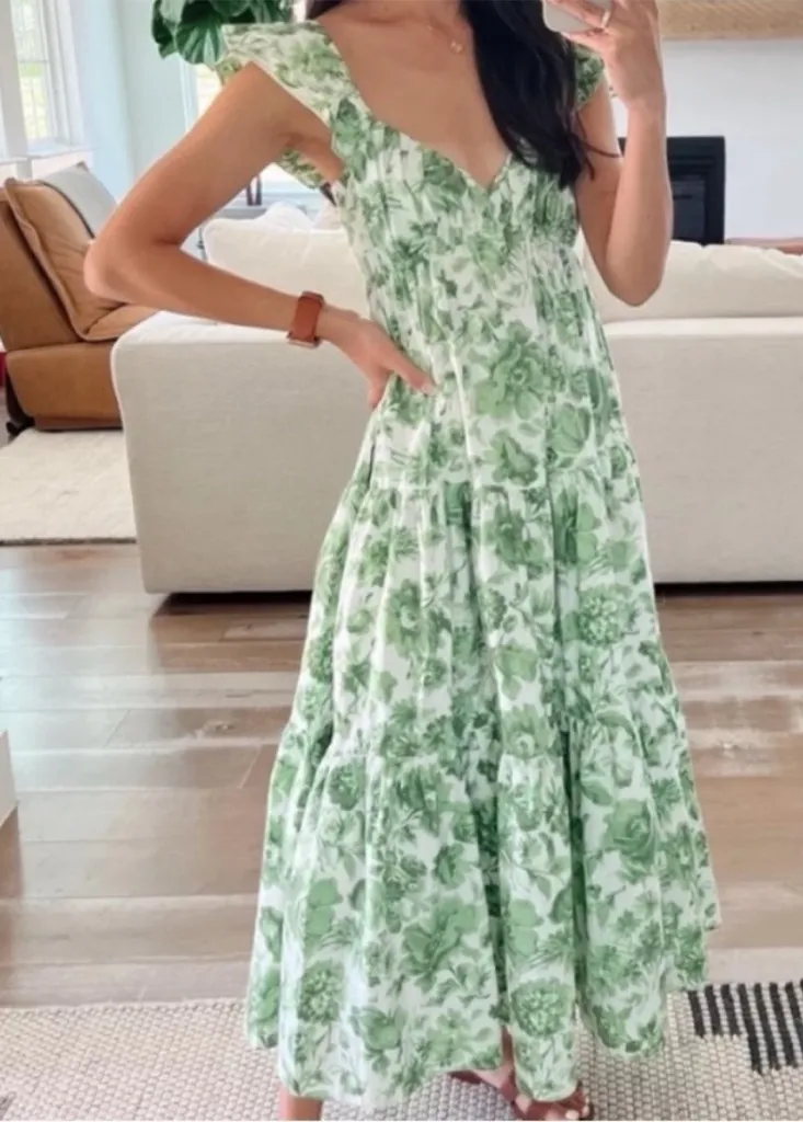Condition: Excellent with no flaws Color: White & green floral print Size: Small Petite •Popl... Show more