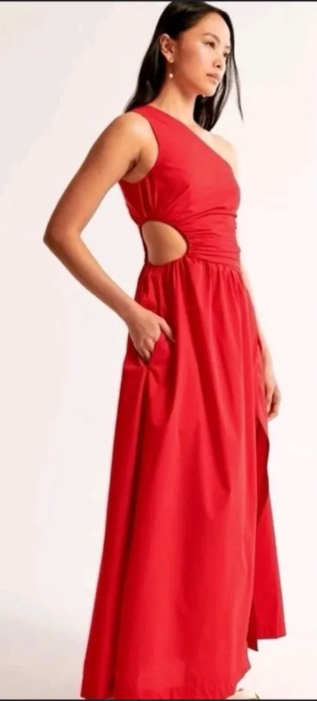 Abercrombie & Fitch Red One Shoulder Side Cutout Maxi Dress, NWT Sz Small - $90 New With Tags - From Ofy