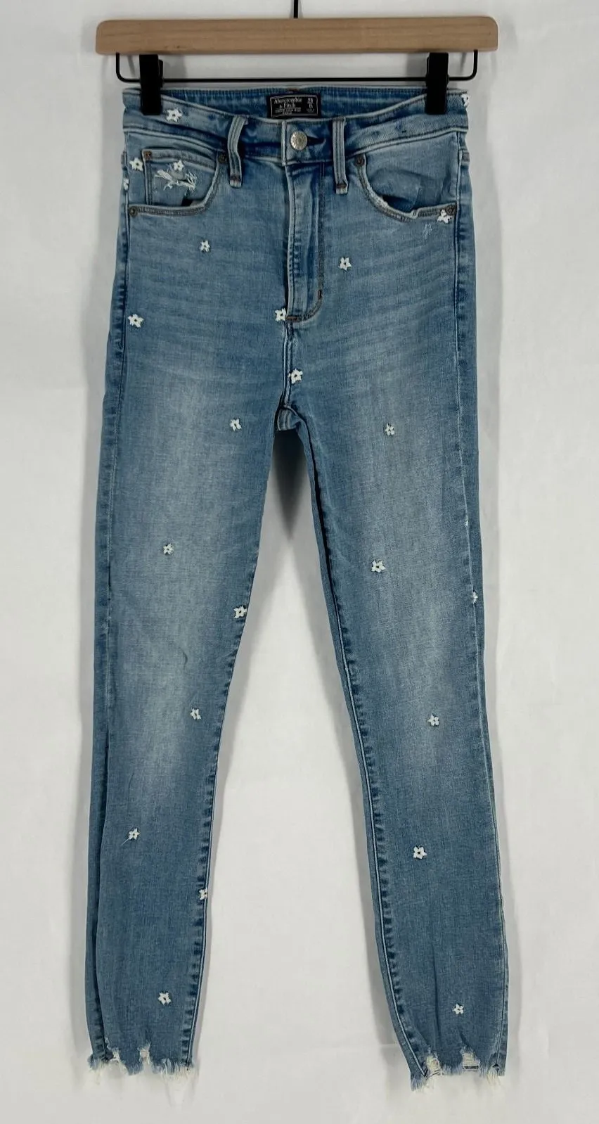 Description Abercrombie & Fitch Simone Ankle Jeans Womens 0 Blue Denim Frayed Hem High Rise Produc... Show more
