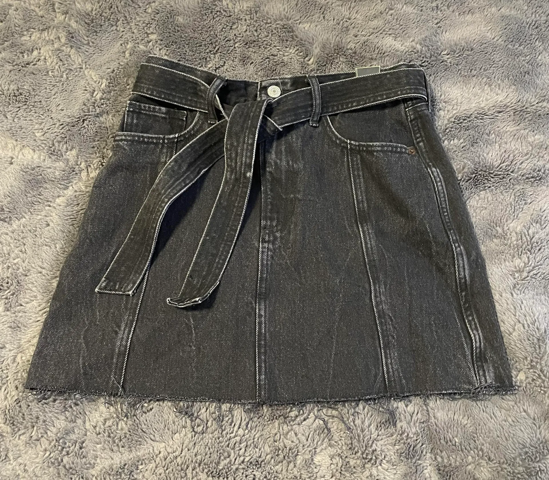 NWT Abercrombie Tie Waist with removable belt Black wash denim mini skirt. Super cute and the remova... Show more