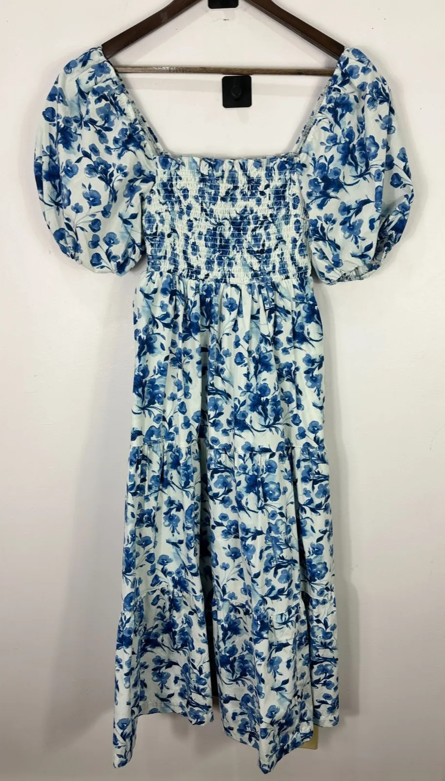 Brand: Abercrombie & Fitch Size: Small Color: White with blue floral print Style: Puff sleeve smocke... Show more