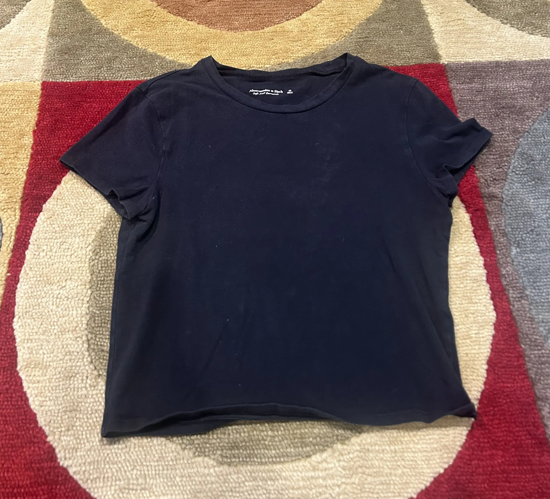 Abercrombie & Fitch Soft A&F Essentials Black Stretchy Short Sleeve Crop Top Women’s Size Medium... Show more
