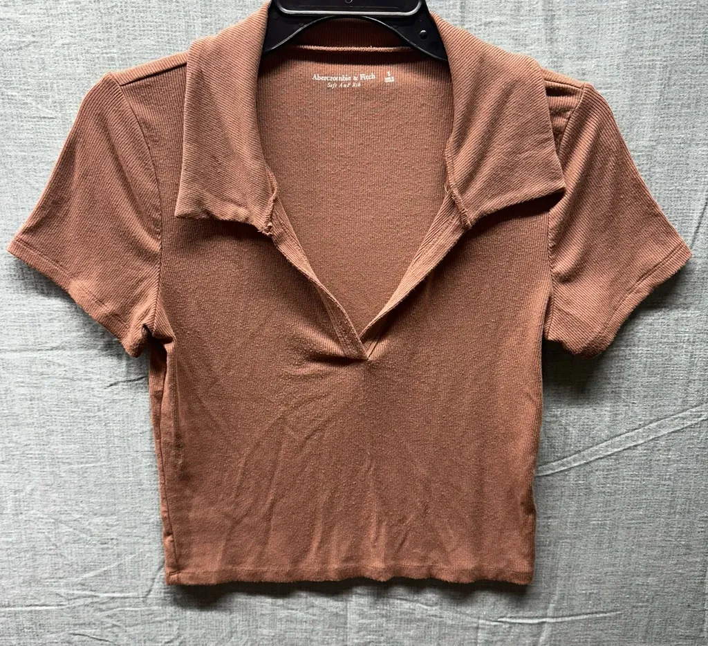 Brand: Abercrombie & Fitch (A&F) • Style: Cropped Collared Ribbed Top / Polo Shirt • Material: "Sof... Show more