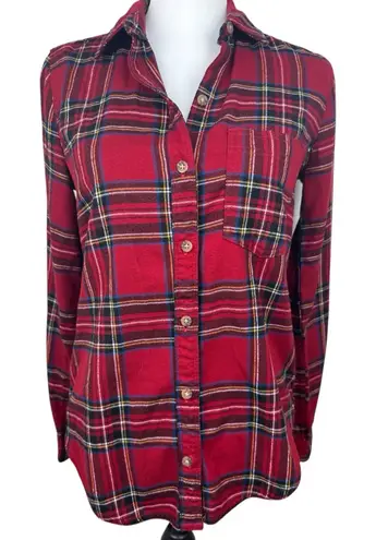 Classic red plaid flannel Button down shirt Popular style! Layer with a tank underneath or wear as s... Show more