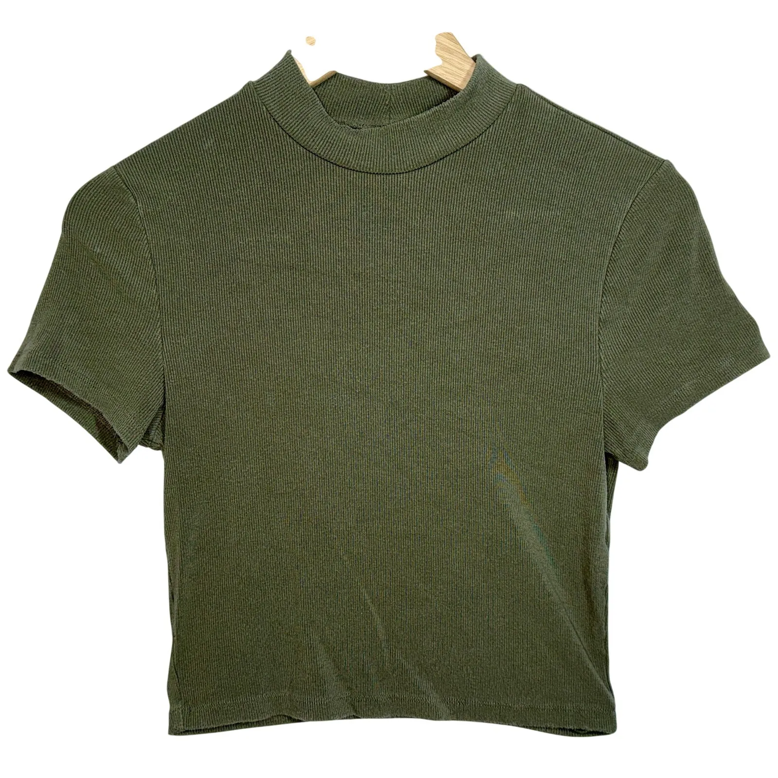 Abercrombie & Fitch Soft A&F Rib Olive Green Mock Neck Short Sleeve Knit Cropped Top Crop Top Womens... Show more