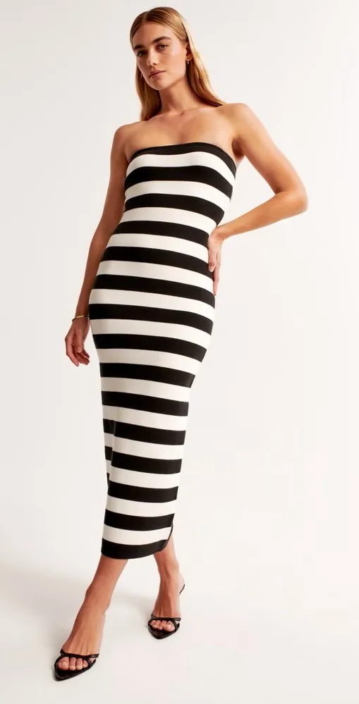 DESCRIPTION Slim-fitting strapless sweater dress in our comfortable sweater yarn fabric with on-tren... Show more