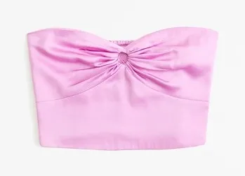 Elevate your style with this stunning strapless top. Made from soft, shimmering pink satin, it drape... Show more
