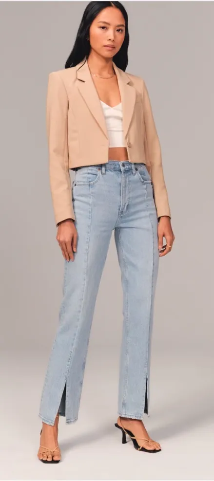 ABERCROMBIE & FITCH The 90s Straight Leg Ultra High Rise Seam Split Hem Jeans Blue Size 31 - $35 - From Samantha