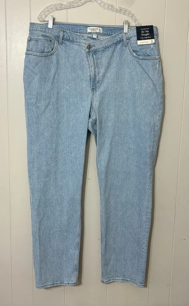 Trendy and flattering Abercrombie & Fitch The 90’s Straight Ultra High Rise Curve Love Criss Cross J... Show more