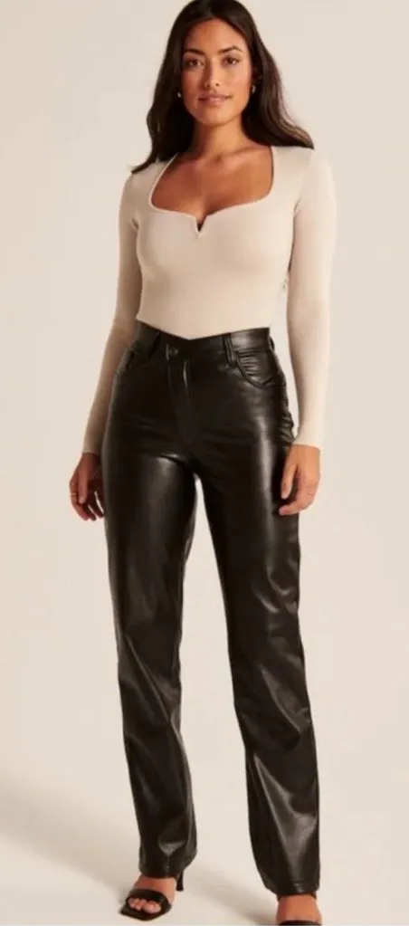 Abercrombie & Fitch The 90s Straight Ultra High Rise in Black Vegan Leather with Crossover Waist Wom... Show more