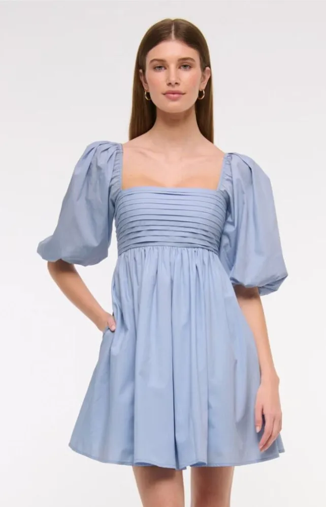 The A&F Emerson Poplin Puff Sleeve Mini Dress in Blue Size XXSP - $34 - From Thrifted