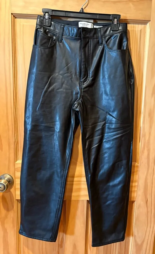 These Abercrombie & Fitch "The Ankle Straight Ultra High Rise" pants, specifically in a black faux o... Show more