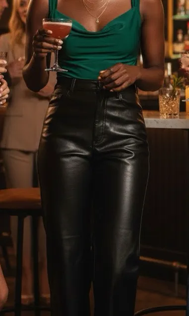 . Ultra high rise pants in luxe vegan leather fabric, featured in the Classic Ankle Straight fit wit... Show more