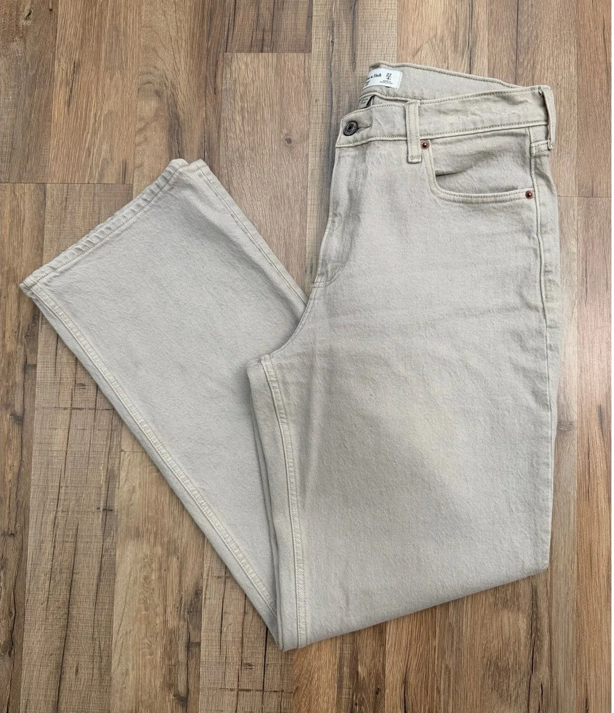 Women's beige denim jeans by Abercrombie & Fitch, style The Baggy Low Rise. Classic 5-pocket design... Show more
