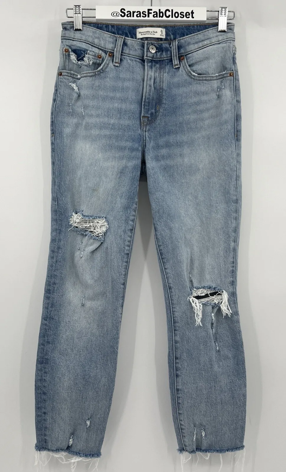 Abercrombie & Fitch The Boyfriend Mid Rise Waisted Distressed Denim Blue Jeans Medium Wash Straight... Show more