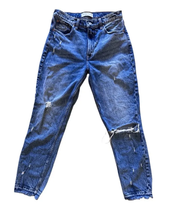 Questions? Leave a comment below! Abercrombie & Fitch The Mom High Rise Blue Jeans Distress Size 28/... Show more