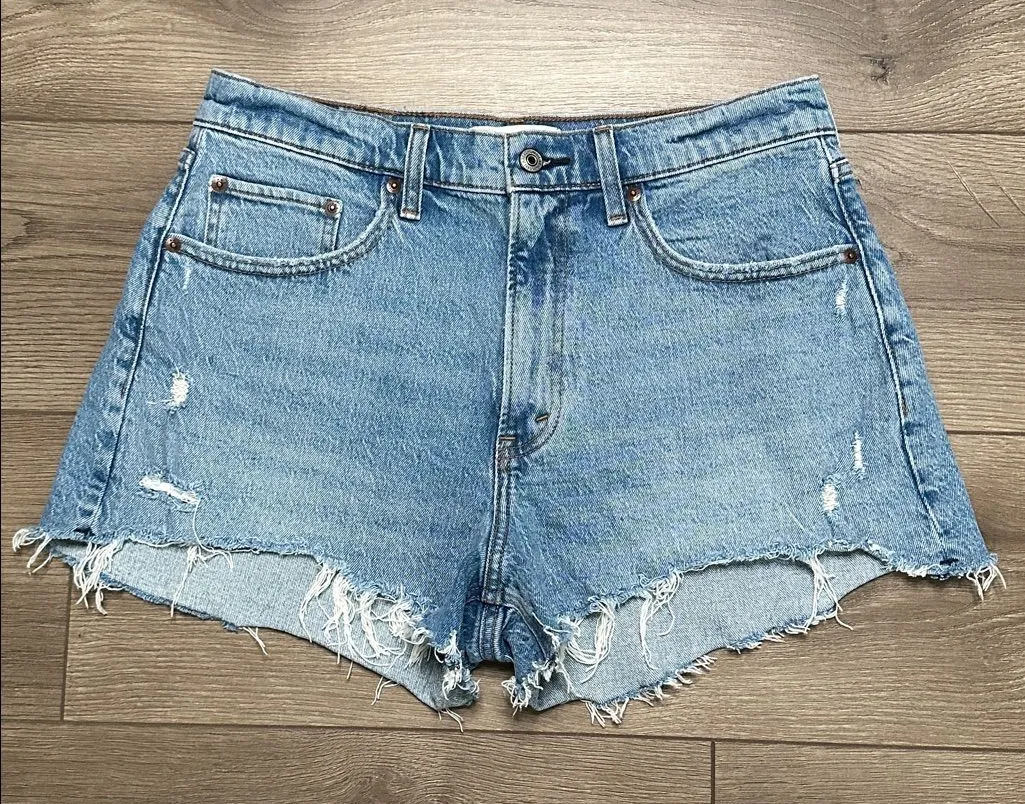 Abercrombie & Fitch The Mom High Rise Curve Love Blue Stretch Jean Shorts Size 30 Excellent conditio... Show more