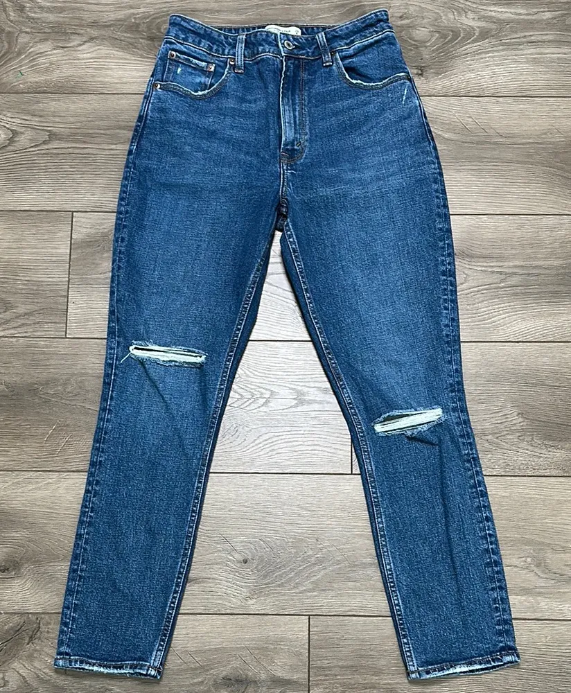 Abercrombie & Fitch The Skinny High Rise Distressed Stretch Blue Jeans Size 28. Excellent condition!... Show more