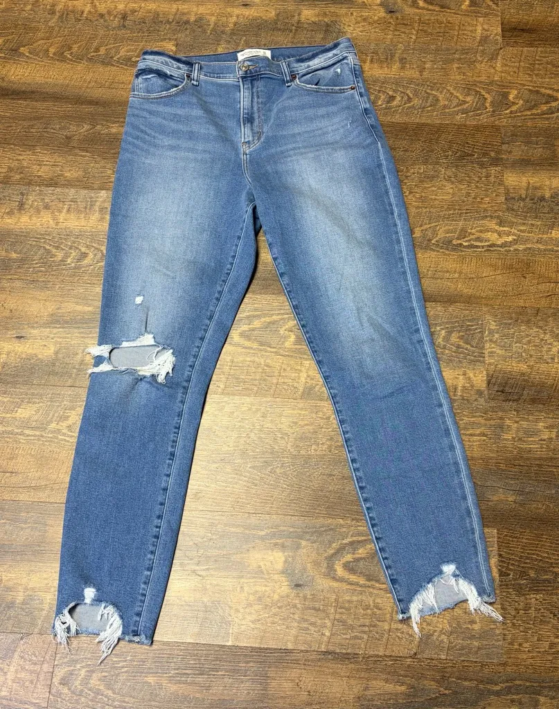 Abercrombie & Fitch The Super Skinny Ankle High Rise Blue Denim Jeans Womens Size 31/12L Distre... Show more