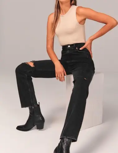Ultra high rise ankle jeans in a straight and relaxed fit through the calf featuring a medium ripped... Show more