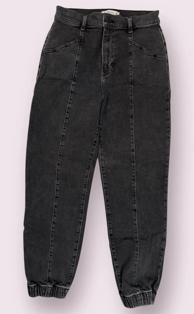 Abercrombie & Fitch Ultra High Rise Black Denim Joggers. Jogger style denim jeans with cuffed, stret... Show more