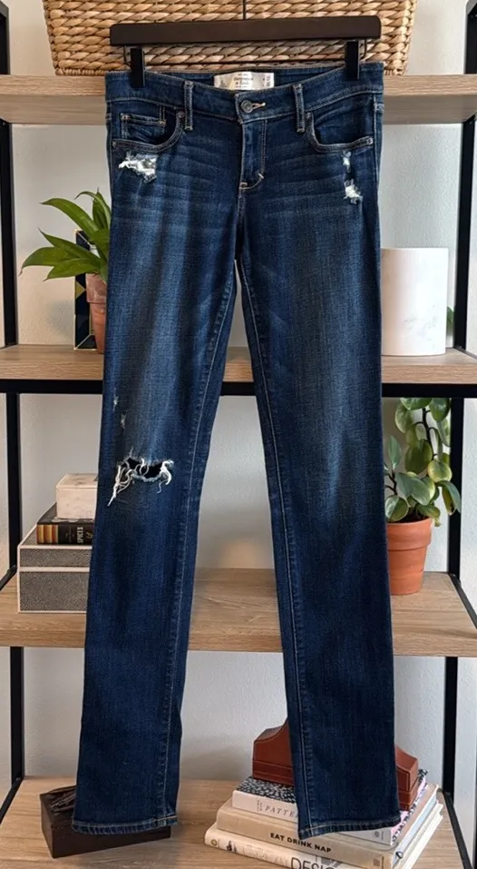 Abercrombie & Fitch Vintage The A&F Skinny Low-Rise Distressed Jeans, 27 x 35 Tall EUC- no wear to... Show more
