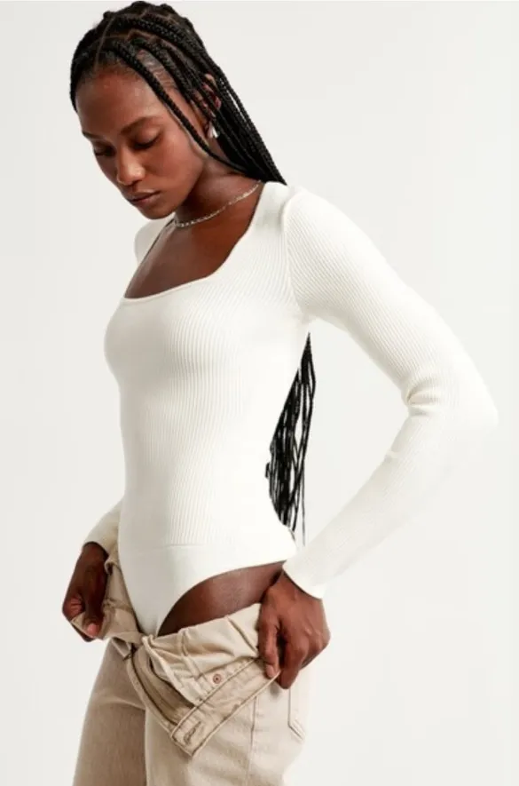 It is a white long sleeve bodysuit from Abercrombie and a size medium. It is ribbed and very cute! N... Show more