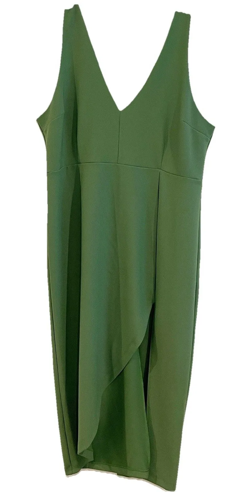 Slim fitting midi dress in elevated double stretch fabric Plunging V Neckline Thigh High Slit detail... Show more
