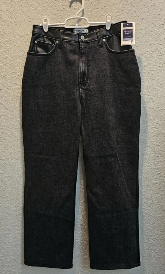 Abercrombie & Fitch Womens 12 short Curve Love The Ankle Straight Ultra High Rise Jean Mixed Fabri... Show more
