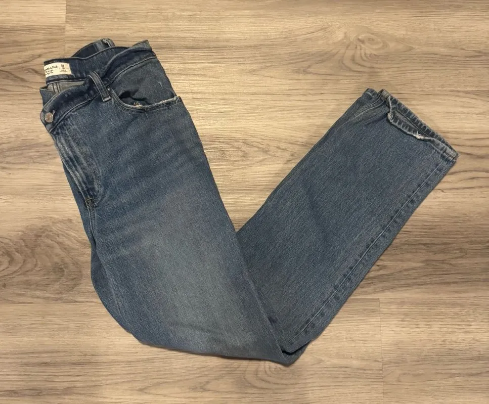 Stylish straight leg jeans. Timeless blue hue. Perfect for everyday wear. Women's Abercrombie 90's S... Show more